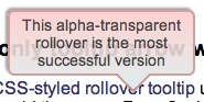 This translucent CSS-styled rollover tooltip uses a span inside the a tag. The shadow is reinstated but with negative top/left values to avoid the arrow. For a final touch alpha transparency (rgba) is applied to the tooltip elements, with trial-and-error tweaks to blend the arrow's colour into the lower gradient and reduce the visibility of the (darker) border colour of the outer triangle beneath the inner.